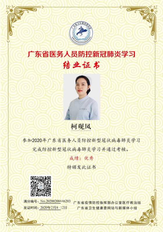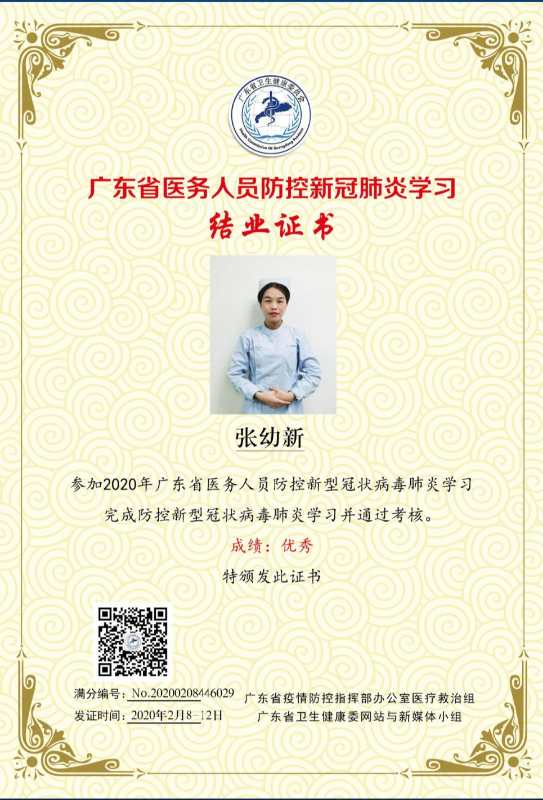 疫情即將散去,春天正悄悄來臨。為了更好的服務顧客,做好防疫措施,深圳維港歡樂口腔全體醫護人員率先通過了廣東省關於冠狀病毒知識的測試,獲得了深圳市相關衛生領導的稱贊(部分證書如下):