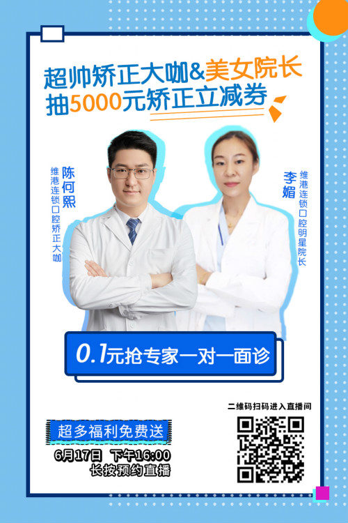 直播中,有“眼尖”粉絲發現帥氣的矯正專家陳何熙主任最近有稍稍胖了一點,紛紛猜測是因為維港口腔的好伙食和開心的工作氛圍的原因,維港口腔的分院名稱“歡樂”、“歡笑”、“加樂”…都好喜慶呀,感覺來了都能天天笑出“魚尾紋”!主播和主持人全程在笑呀,在這裏的牙醫和護士們超有幸福感!也有個別“不老實”的粉絲很關心美女院長的婚嫁問題,由此可能迎來了“看牙是假,看美女是真”的時尚潮流!歡迎在淘寶搜索“維港口腔”或識別文中圖片二維碼觀看精彩回放!