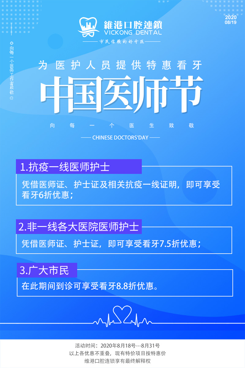 維港口腔品牌為醫護人員提供特惠看牙——第三屆中國醫生節