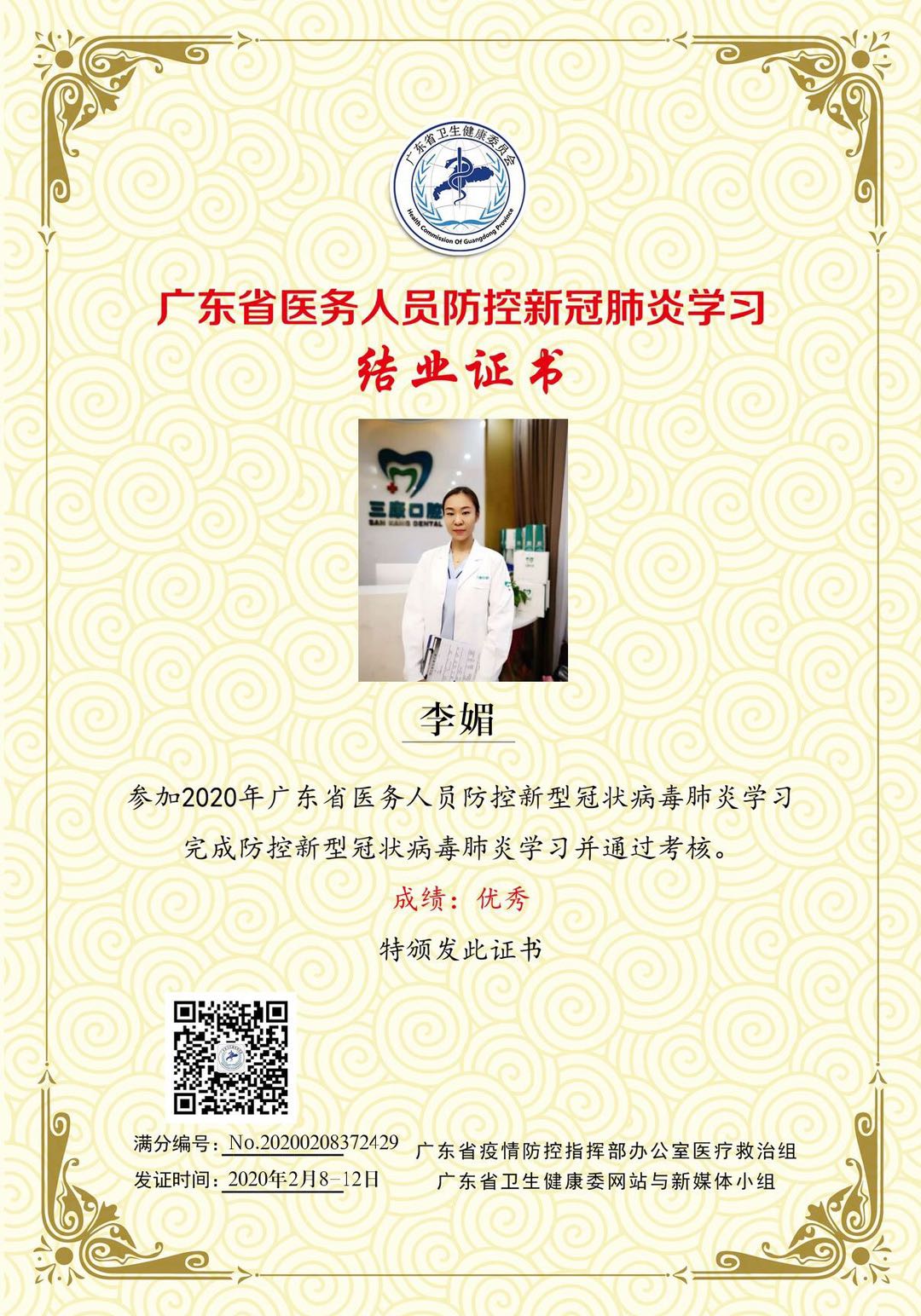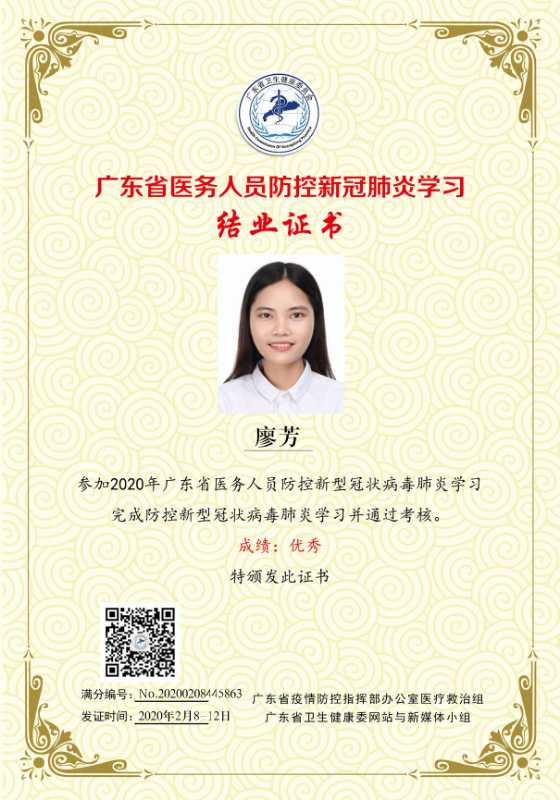 疫情即將散去,春天正悄悄來臨。為了更好的服務顧客,做好防疫措施,深圳維港歡樂口腔全體醫護人員率先通過了廣東省關於冠狀病毒知識的測試,獲得了深圳市相關衛生領導的稱贊(部分證書如下):