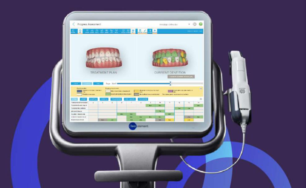 2、Invisalign隱適美治療進展評估工具:與特定階段的Clickcheck方案進行即時對比;方便醫生評估和掌握隱適美治療進度,隨時調整矯治器佩戴進度;使用顏色編碼的牙齒移動表可掌握如何跟蹤每顆牙齒並評估解決方案以實現預期的治療。